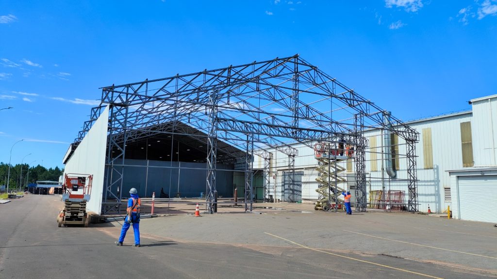 Projeto e execução em Gravataí/RS com 1.100 m², abrangendo todas as etapas: projetos, fundações, estrutura metálica, telhamento, piso polido, instalações elétricas, PPCI, SPDA e linha…